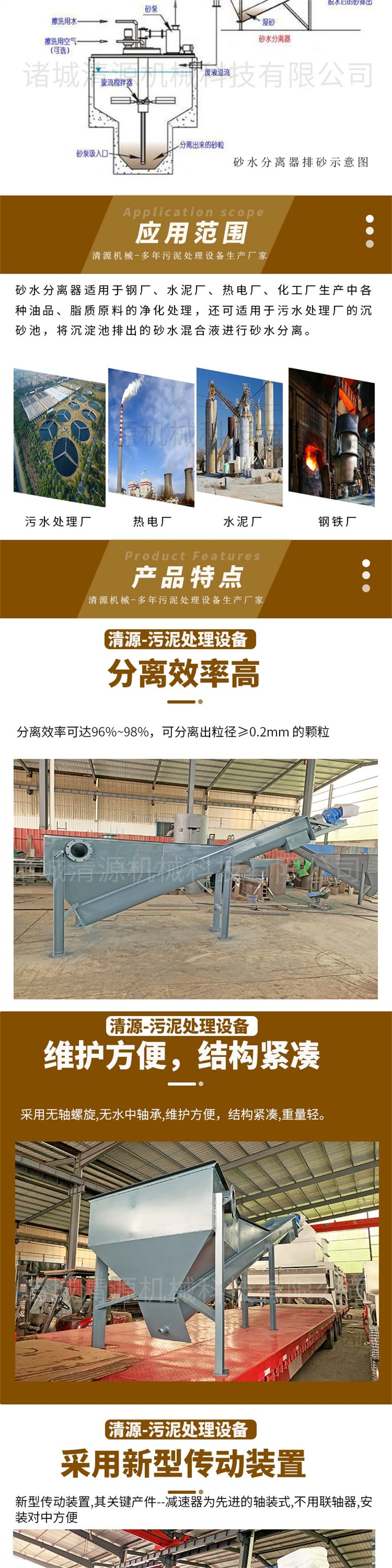 用于將城市污水處理或工業廢水處理中的沉砂池排出的砂水混合液進行砂水分離。