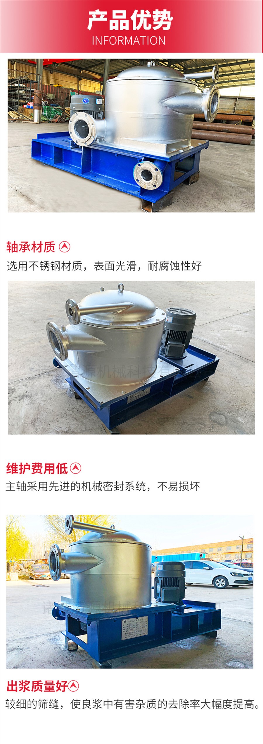 了年產二百多臺的輝煌成績。目前公司生產的壓力篩可用不銹鋼(304)和A3板兩種材料制作,精鑄304葉片和轉子,進出漿管路(漿料濃度)可選用自