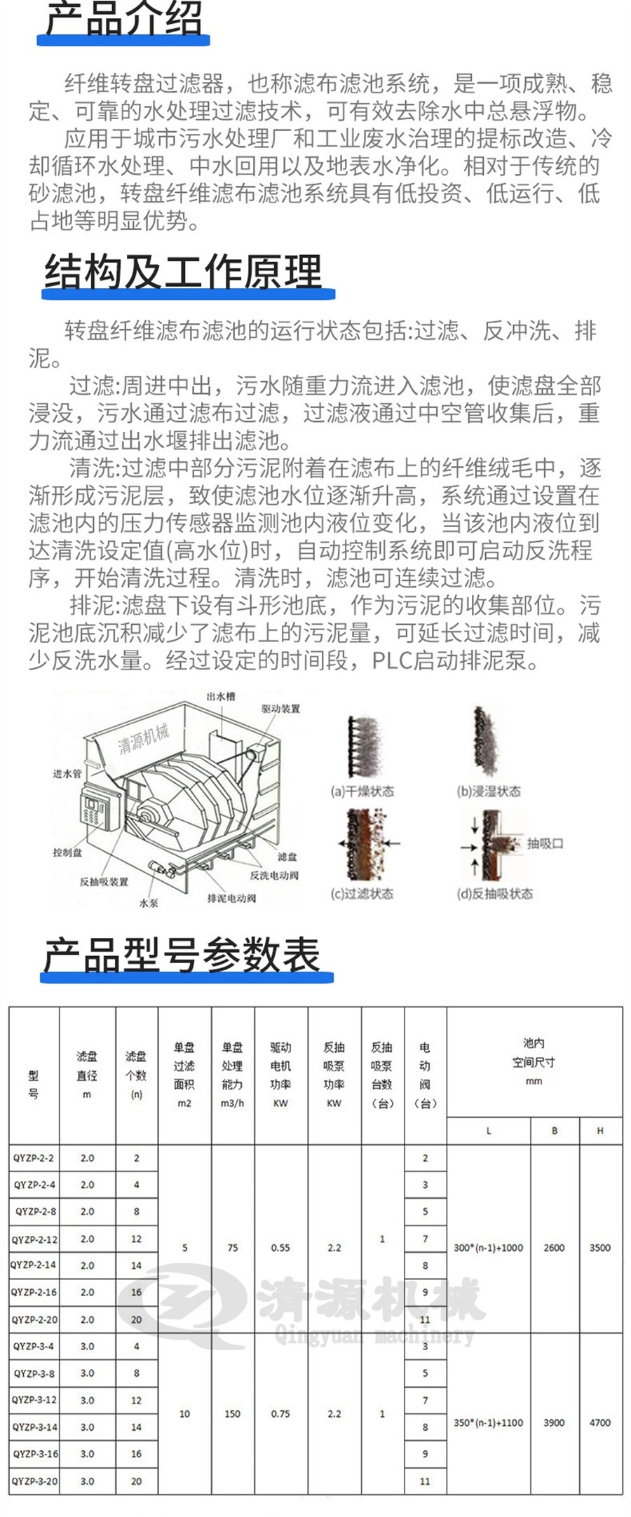 諸城清源機(jī)械科技有限公司纖維轉(zhuǎn)盤過濾器特點(diǎn):
